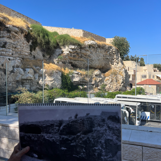 After leaving through this gate, we were on our way to the Garden Tomb, another potential spot of Jesus burial and resurrection. On one side of the garden, there were cliffs that resembled a skull, and these days it doesn't exactly look like that anymore, but with old photos you can see it. In John 19:17, it says that Jesus was crucified in a place called the Skull and also in verse 41 it says that it was near a garden, in which they buried Jesus because of the lack of time. The tomb not far away made this the most likely place because of how it aligned with scripture. The garden itself was beautiful. I was so peaceful. Even though the place of His burial is still debated, what the location of the garden represents is what matters. That Jesus died, like DIED, for us. For me. For you. For all of us. Yup, He did. Then, He rose and we get to have a personal relationship with Him. Like one on one. How could we want anything other than that?
