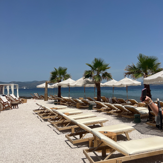 We finally got to our Airbnb after being shuttled by around 10 am and we dropped our stuff and headed to the beach. We went to Becvice Beach, which is a pretty popular beach. We weren’t prepared for all the Speedo’s and couldn’t stop laughing. We found a good spot for some lunch at a place called Therapy Bar. This is where Haley’s obsession with truffles began. They had some sandwich that had truffle oil on it and she fell in love. The rest of the time she only wanted something that had truffle in it. I had a pretty good sandwich, too, but we didn’t get any photos of the food. But we did get some cute photos in the chairs there. Oh and they really seem to like orange juice here. They do deals with orange juice and coffee, and it was such a joy because I love both of those!